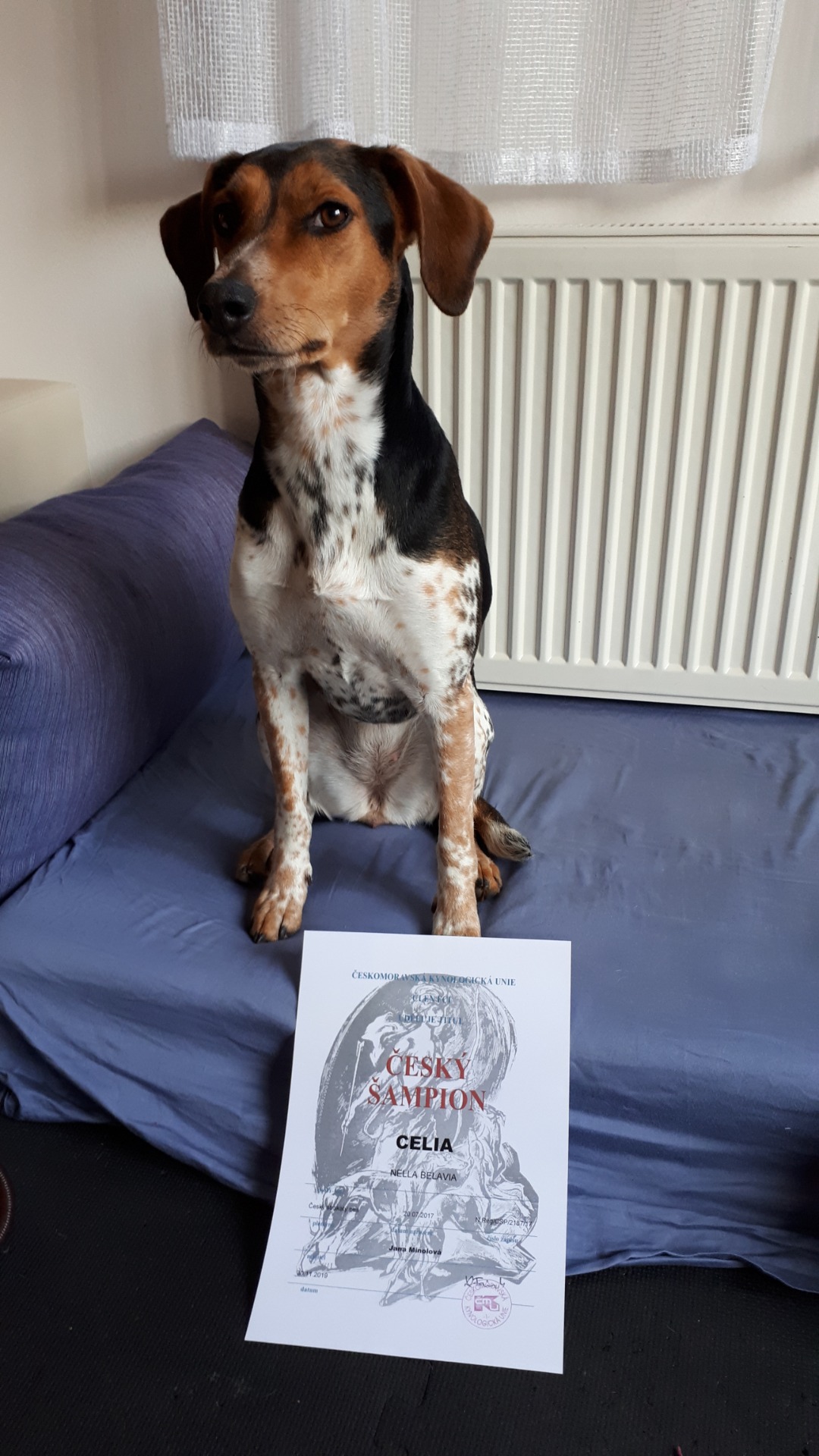 Po cestě zpátky jsme si ještě v Letňanech na psí výstavě vyzvedli diplom pro Českého šampiona.
