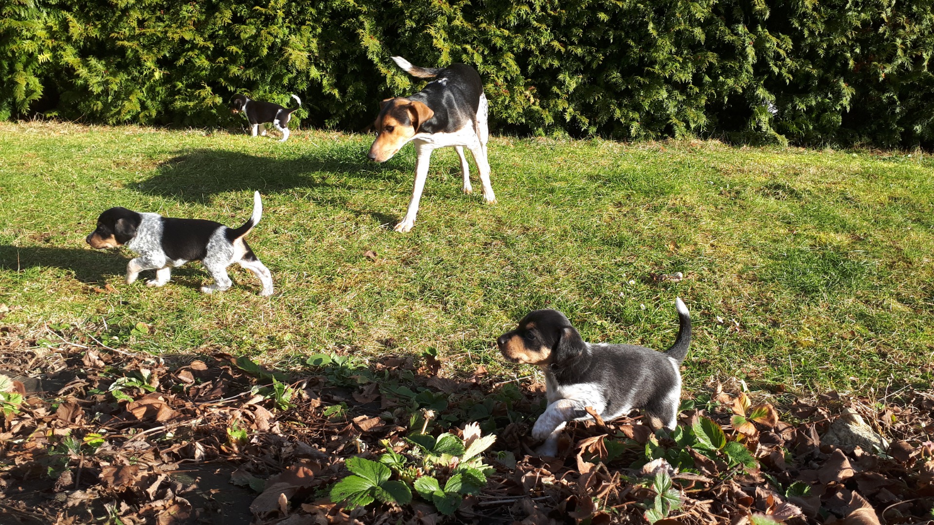 Štěňata a jejich jména. Cecílie na počest všech strakatých Cilek, Cecilek, babičky Ctislávky a mamimky Celie. Cik Cak už se jako Cikcak v historii chovu strakáčů také objevil, takže na počest strakatých psů. Capoeira je bojové umění a naše Capoeira si ho zaslouží, právo být tady s námi si statečně vybojovala. Camaro je pěkné sportovní auto...na auta je expert Pavla, a Crémant - výborné bublinkaté víno z Alsaska, to je zase naše parketa.
